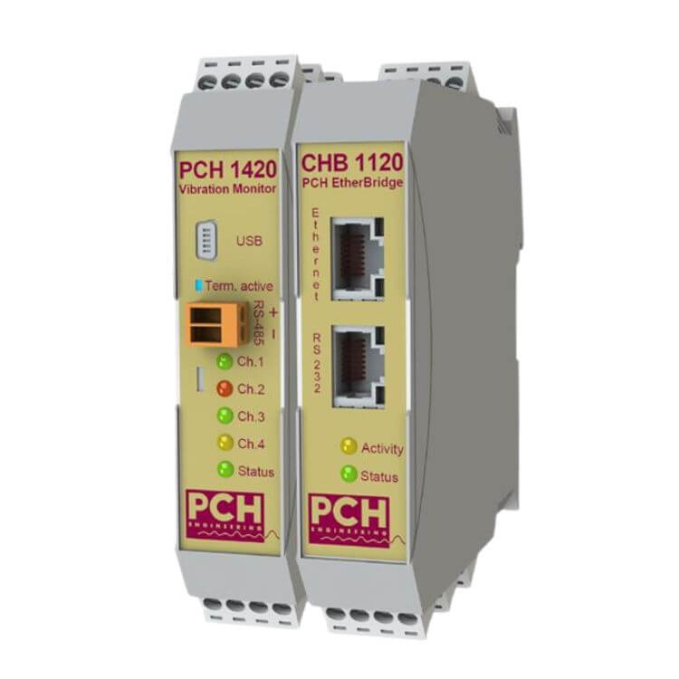 With a 4-channel PCH 1420 Vibration Monitor and the PCH EtherBridge, a wide range of real-time data – including time waveform recordings – is transferred to Green-Y’s PLC system via a standard OPC UA protocol.